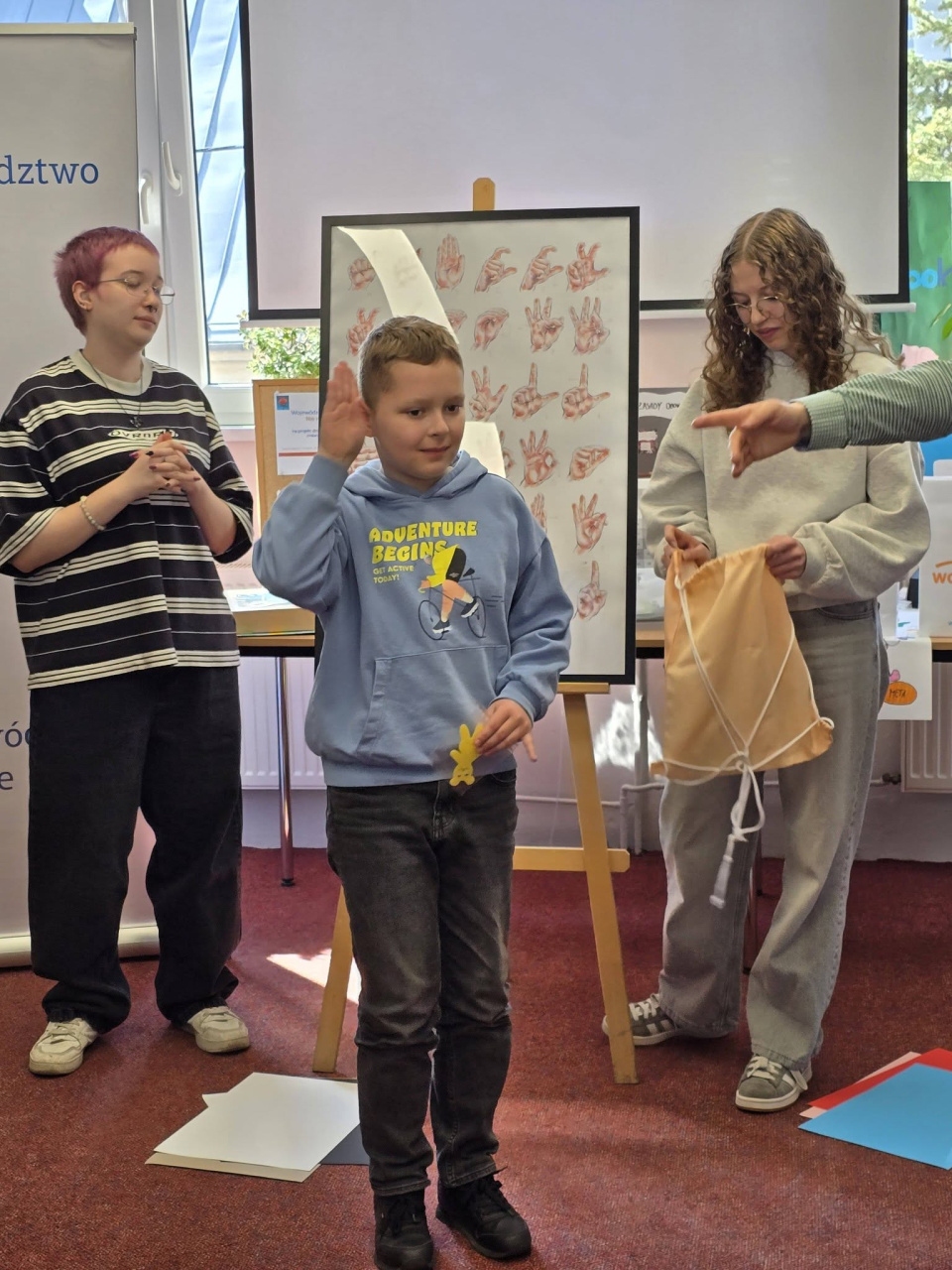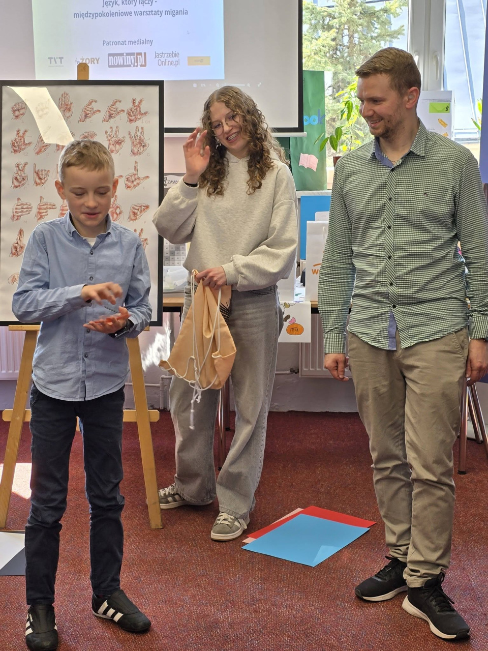 Warsztaty miały charakter praktyczny – uczestnicy uczyli się prostych znaków, gestów i sposobów wyrażania emocji. Nauka odbywała się poprzez zabawę, ruch i interakcję, co sprawiło, że dzieci bardzo szybko zaczęły „migać” pierwsze komunikaty. Jak pokazuje praktyka, język migowy może być dla najmłodszych nie tylko narzędziem komunikacji, ale także sposobem rozwijania empatii, uważności i otwartości na innych.