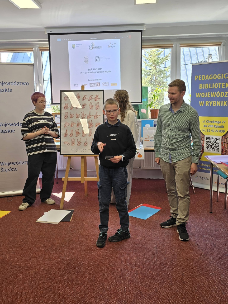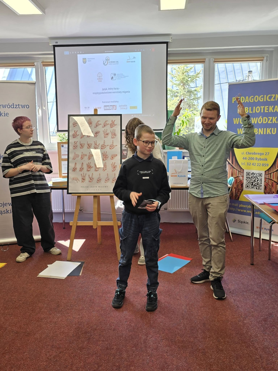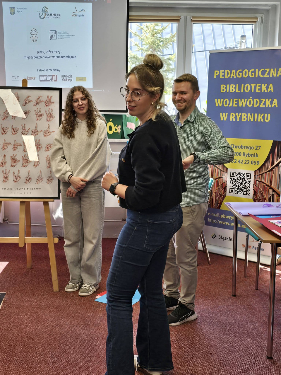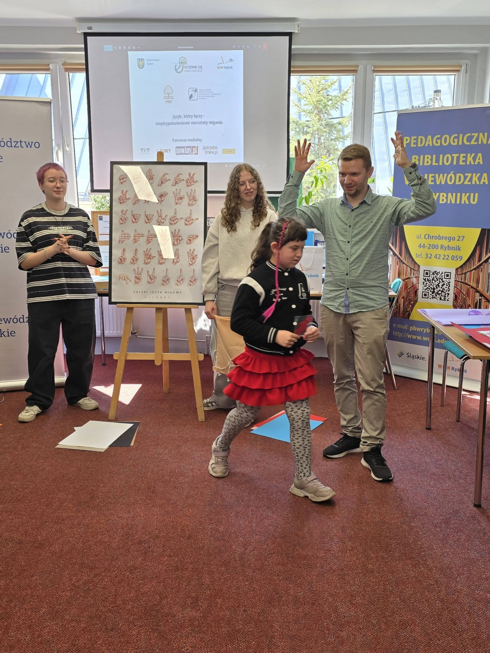 W Wojewódzkiej Bibliotece Pedagogicznej w Rybniku odbyło się spotkanie, podczas którego dzieci – wspólnie z dorosłymi – poznawały podstawy języka migowego. To właśnie najmłodsi uczestnicy udowodnili, że nauka może być jednocześnie intuicyjna, naturalna i pełna radości.